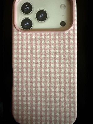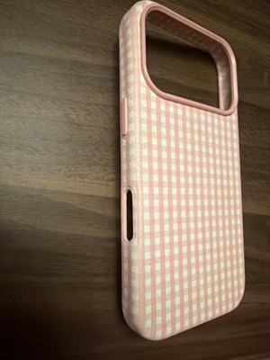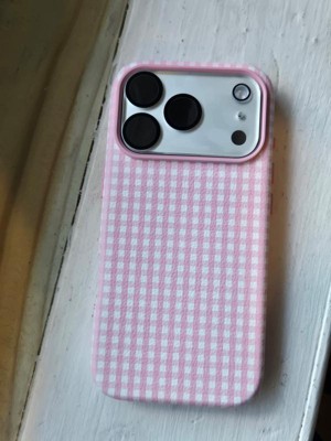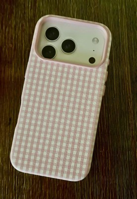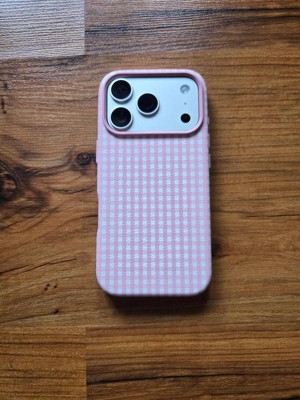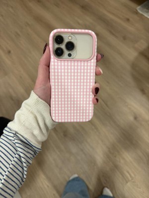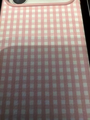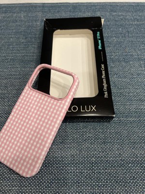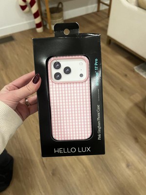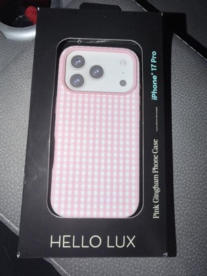 The Hello Lux pink gingham cell phone case for iPhone 17 is cute but feels flimsy. I look forward to using this case in February for cutesy valentine day vibes. The case fits my phone well and the side buttons work well too. It is easy to put the case on the phone but difficult to take off.