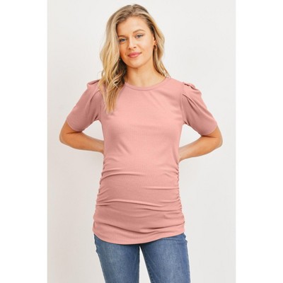 Hello Miz Casual Short Sleeve T-Shirt Side Ruched Maternity Top - 1 of 4