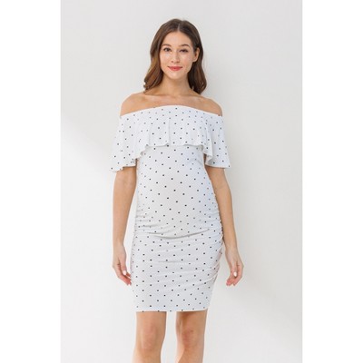 Hello Miz Women's 3/4 Sleeve Lace Bodice Pleated Maternity Dress - White - Large
