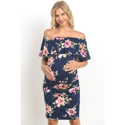 Hello Miz Women's Off Shoulder Ruffle Maternity Maxi Dress