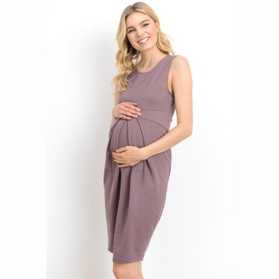 Hello Miz Women's Hi-Low Short Sleeve V Neck Maternity Wrap Dress with Belt - Purple - Medium