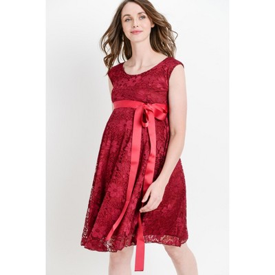 Hello Miz Women's Long Sleeve Round Neck Ruffle Hem Maternity Dress - Dark Wine - X Large