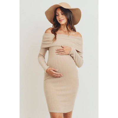 The elegant off-shoulder neckline adds a touch of sophistication and femininity, giving moms-to-be a stylish option that doesn't sacrifice comfort for fashion. Thoughtfully tailored to embrace your curves, this dress enhances your natural shape.