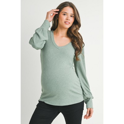 Hello Miz Women's Ribbed Scoop Neck Long Sleeve Maternity Top - 1 of 4