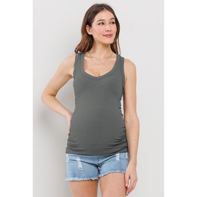 Hello Miz Women's Ribbed Scoop Neck Long Sleeve Maternity Top