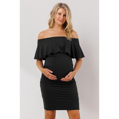 Hello Miz Women's Ruffled One Shoulder Maternity Dress