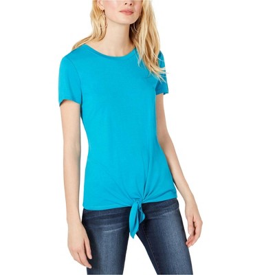 Hello Miz Women's Short Sleeve Ribbed Scoop Neck Maternity Top - Jade - Medium