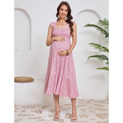 - Flattering smocked bodice: Provides gentle stretch to comfortably hug your growing bump while offering a secure fit and ensures all day comfort and easy movement. Adjustable straps with bows add a sweet, feminine flair and allow for a personalized fit.
