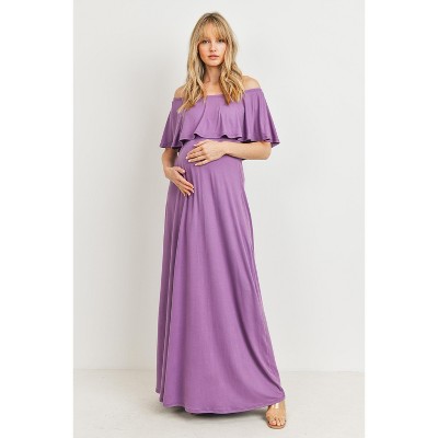 Hello Miz Women's Swiss Dot V Neck Split Sleeve Maternity Dress - Lavender - X Large