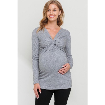Hello MIZ Womens Bell Sleeve Round Neck Maternity Knit Top