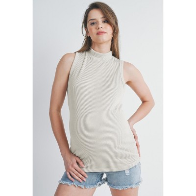 Hello Miz Women's Ribbed Mock Neck Elbow Sleeve Maternity Top - 1 of 4