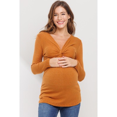 Hello MIZ Womens Solid Ruched Long Sleeve Square Neck Maternity Top - 1 of 1