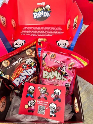 Treat yourself to a fun, tasty experience with Meiji Hello Panda! Each bite-size, crunchy cookie is filled with a soft, smooth caramel crème so you can pop them in your mouth whole without worrying about any melty mess. Say goodbye to ordinary snacking and immerse yourself in the sweet search for all 32 cute pandas illustrated on these satisfying cookies.
