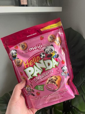 Treat yourself to a fun, tasty experience with Meiji Hello Panda! Each bite-size, crunchy cookie is filled with a soft, smooth strawberry crème so you can pop them in your mouth whole without worrying about any melty mess. Say goodbye to ordinary snacking and immerse yourself in the sweet search for all 32 cute pandas illustrated on these satisfying cookies.