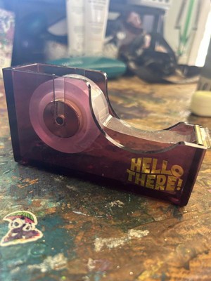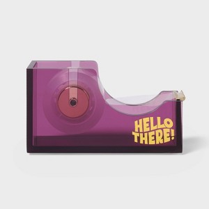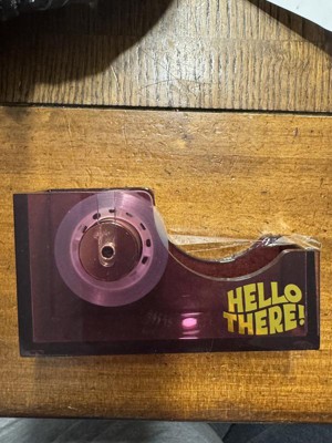 Add delightful colors to your study or workspace with the Hello There Midsize Tape Dispenser with Clear Tape from Tabitha Brown for Target. This purple tape dispenser features a clear design with the text "Hello There" in yellow for a fun and quirky accent. Complete with a roll of transparent tape, this tape dispenser also has a sharp edge for easy cutting of tape pieces.