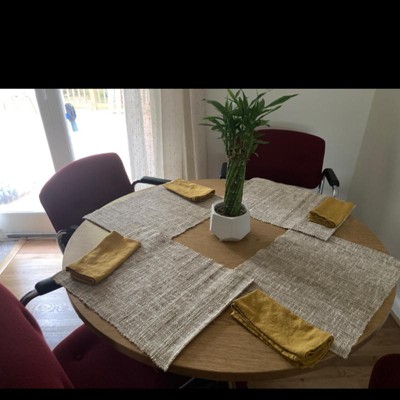 • A: The placemat features a natural basket-weave finish, adding texture to your dining table.