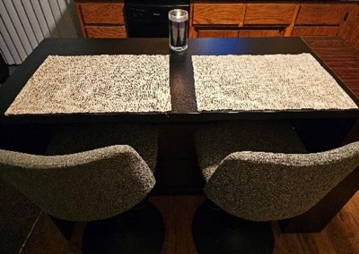 • A: The placemat should be spot cleaned or wiped clean for easy maintenance.