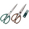 I chose this 2 pack of kitchen scissors for the convenient take-apart design of the standard shears and the novelty of the herb scissors. The shears come apart easily for a thorough cleaning and the herb scissors came with a tool for getting between the blades. Both are perfectly sharpened and Ive been using them daily.