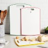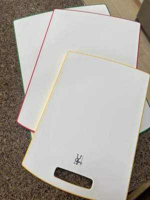 - Set features cutting boards in 3 handy sizes: small (8.5 x 12.2-inches), medium (10.25 x 15-inches), and large (11.5 x 16.5-inches)