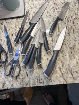 Includes: Paring Knife, Utility Knife, Santoku Knife, Chef Knife, Bread Knife, Shears, Knife Block, Steak Knives