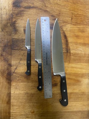 - Set includes 4-inch paring, 6-inch utility/sandwich knife, and 8-inch chef's