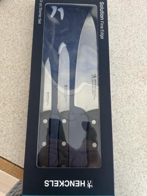 I bought this set for my son for his new apartment, but I decided to keep them to add to our Henckels collection. (I ordered him another set.) Henckels has always produced a quality knife, always our go-to knives.