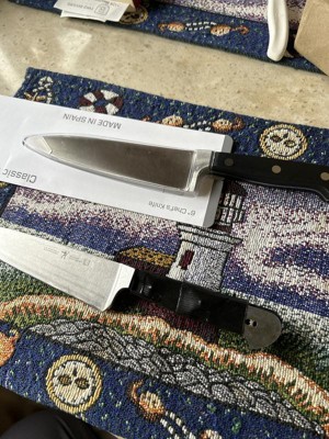 Experience confidence with each cut. The Henckels International CLASSIC Chef's Knife boasts a precision, fine-edge blade that is honed for long-lasting sharpness. Chop potatoes, dice apples, mince shallots and slice salmon effortlessly - this kitchen workhorse is up for almost any task.High-quality German stainless steel strengthens this durable, Spanish-made knife. With a seamless transition from blade to handle, the knife's fully forged construction provides balance as the traditional triple-rivet handle encourages tireless cutting.Henckels International makes essential kitchen tools every home chef needs. From steak knives to spatulas, every product boasts high quality at an exceptional value. Created in 1895 by Zwilling J.A. Henckels, this value-driven brand guarantees the same durability, design and ease of use for which the global company is known. Equip your kitchen with expertise with Henckels International.