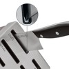Guests are overwhelmingly satisfied with the knife set, particularly praising the self-sharpening block feature that ensures knives remain sharp with each use. The set is appreciated for its excellent quality, sharpness, and ergonomic design, which enhances the cooking experience. The storage block not only sharpens but also adds a touch of elegance to kitchen counters. This set is considered a valuable addition to any kitchen, ideal for both seasoned cooks and those looking to upgrade their culinary tools.