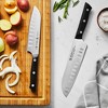 I am a casual home cook who wants to get done cutting up my vegetables and aromatics with as little time as possible. I tried the 7" Santoku to mince an onion. It does the job with little effort given the amount I spent on it.