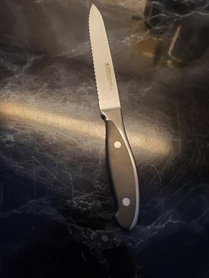 [This review was collected as part of a promotion.] I've never had a high quality serrated kitchen knife before (just longer bread knives) but this one is amazing! I highly recommend it!