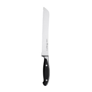 The Henckels International Forged Synergy 8" Bread Knife allows you to cut with confidence. Fabricated from high-quality German stainless steel, the strong, serrated blade effortlessly cuts through hard bread crusts. Enjoy neat slices of sourdough and cubes of Ciabatta thanks to the blade's aggressively long prongs.The forged bolster construction seamlessly transitions from blade to handle for durability and balance. Designed for comfort and style, the ergonomic double-rivet handle features a sleek, stainless steel backing that looks as good as it feels.Henckels International makes essential kitchen tools every home chef needs. From steak knives to spatulas, every product boasts high quality at an exceptional value. Created in 1895 by Zwilling J.A. Henckels, this value-driven brand guarantees the same durability, design and ease of use for which the global company is known. Equip your kitchen with expertise with Henckels International.