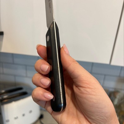 Equip your kitchen for less with these essential knives.Since 1895, Henckels has been making high quality knives at an exceptional value.Solution knives can tackle every kitchen task. Peel and slice fruit with the paring knife, dice vegetables and chop herbs with the chef’s knife, and cut effortlessly through bread crusts with the bread knife.Fabricated from high-quality stainless steel, the single-piece, precision-stamped knife blades are lightweight without sacrificing strength and durability. Honed for long-lasting sharpness, the fine-edge blades boast precision cutting.Curved for comfort, the break-proof, triple-rivet handles are pleasant to grip, giving you the control you need to slice through tougher cuts with ease. This ergonomic handle lets you enjoy maximum maneuverability and fatigue-free cutting.