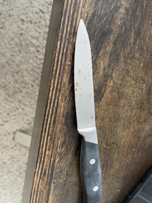 would have given a 5 but pairing knife did not fit well in slot, seemed loose. This was a gift. The knives feel good in the hand. Very good quality.