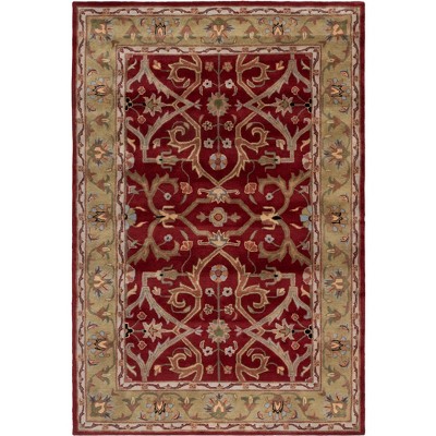 Crafted with precise hand-tufted techniques in the vibrant lands of India, this rug showcases a harmonious blend of rich red and golden hues that command attention and create a warm, inviting atmosphere. The intricate pattern, inspired by timeless traditions, features an array of elegant floral motifs dancing across the lush red backdrop, framed by a contrasting golden border that adds a touch of sophistication to any room.