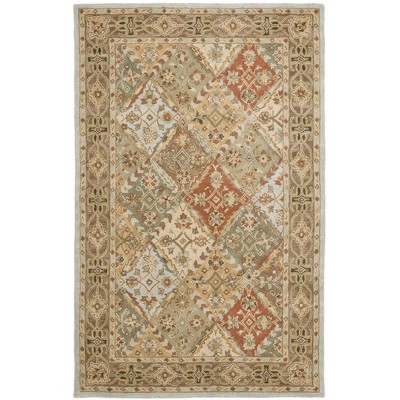 Discover the enchantment of traditional artistry with our hand-tufted wool area rug, a timeless addition to any space. This 5' x 8' medium rectangle rug boasts a plush 3/8" pile height that invites you to experience its luxurious texture underfoot. The alluring blue and rust palette imbues your living space with warmth and sophistication, while the intricate pattern radiates a sense of iconic elegance.
