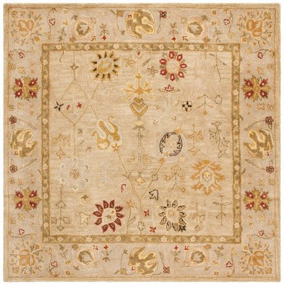 Embrace the timeless elegance of traditional design with this luxurious 6' X 6' square area rug. Hand-tufted in India from the finest wool, this rug showcases a warm rust and beige color palette that brings an autumnal charm to your living space. The rug's detailed pattern features intricate florals and classic motifs, creating a rich tapestry that is sure to complement both contemporary and traditional interiors.