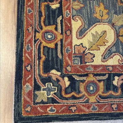 The rug is nice and thick, seems to be well made. However, the colors do not match the picture. The red is more a mix of reds and rust, and the navy blue is a combo of green and black. There’s a lot more green in it than I was expecting.