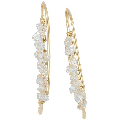 - These sweet ear climbers feature a dainty line of beautiful Herkimer Diamonds that have been wrapped onto the earring frame. Wear climbing up the ear for a feminine statement piece, or dangling to switch it up. Note: This design can be purchased as a single earring or a pair. Available in solid 14K Gold.