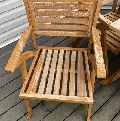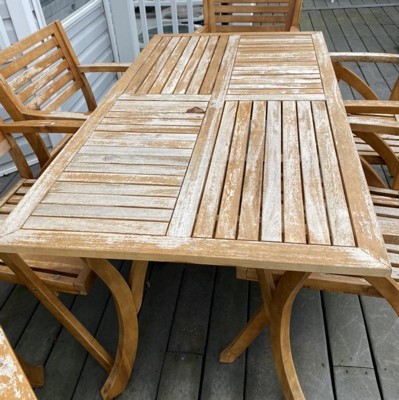 Q: I bought this set a year ago and it was left out in the Minnesota weather and I noticed the finish is peeling off. What's the best way to refinish the surface of the table and chairs? Does it need to be completely sanded and a good teak oil used on it?