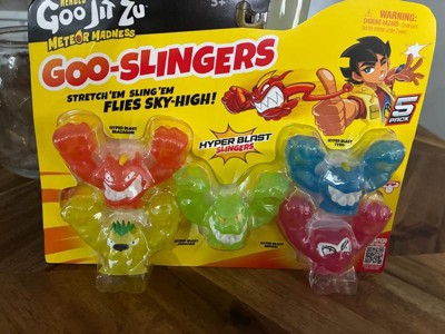 The stretch that can’t be contained! Get ready to “stretch to the extreme” with an all-new way to play - introducing Heroes of Goo Jit Zu: Meteor Madness Hyper Blast Goo-Slingers! Kenji, the Goo Keeper’s nephew, has unlocked the secrets of his uncle’s old designs to create the ultimate Goo-Slingers, adding his own twist to the legendary power of the Goo. Kids can relive the moment Kenji cracks the code and brings the Hyper Blast Goo-Slingers to life, along with their action-packed battles, in the brand-new Heroes of Goo Jit Zu episodes on YouTube. Though small, these Goo-Slingers are undeniably mighty. Standing at just 2” (5cm) tall, they stretch to their limits before launching sky-high for epic aerial battles. Kids will be amazed as their favorite Heroes of Goo Jit Zu transform into high-flying slingers, ready to be launched with their fingers or with the powerful Goo-Slingers Mega Launcher! These stretchy slingers extend up to 23” (60cm) before soaring through the air for high-impact fun. Kenji’s Goo-Slingers 5 Pack contains 5 incredible translucent " Hyper Blast" Goo-Slingers! Stretch and sling Blazagon, Tyro, Jagooar, Rock Jaw and Bengal into battle to create the ultimate showdown between good and evil! With 31 Goo-Slingers to collect across the Meteor Madness series, the battle is just beginning. Heroes of Goo Jit Zu - Goo Slingers: Stretch ’Em, Sling ’Em, Fly Sky-High!