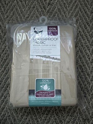 [This review was collected as part of a promotion.] This was my first time trying a waterproof fabric shower curtain and I was quite impressed. It provides the waterproof coverage needed, but it is still tasteful and makes it easy to style your bathroom. The herringbone details are a very nice touch. The best part is you can wash your shower curtain in the laundry preventing unwanted build up. .