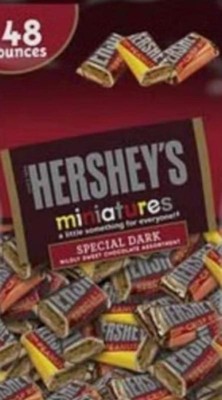 - HERSHEY'S SPECIAL DARK Mildly Sweet Chocolate in miniature candy bars, including dark chocolate, dark chocolate with peanuts, and dark chocolate with crisped rice