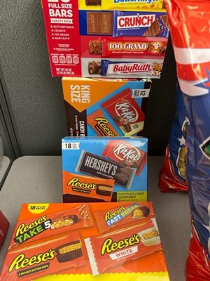 - Includes KIT KAT Wafer Bars, REESE'S Peanut Butter Cups, HERSHEY'S Milk Chocolate Bars, and HERSHEY'S Milk Chocolate with Almonds Bars