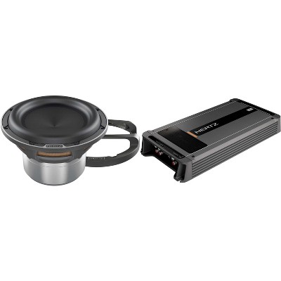This bundle includes a powerful Hertz Mille Legend Series bass amplifier, a 10-inch subwoofer, and a die-cast aluminum grille for optimal car audio performance.