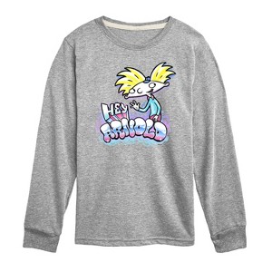 Hey Arnold! - Airbrush Arnold - Toddler And Youth Long Sleeve Graphic T-Shirt - Rock your style with Hey Arnold! graphic apparel. Featuring Arnold, Helga, and the gang, these designs bring the heart and humor of this beloved animated series about growing up in the big city.