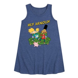 Hey Arnold! - Arnold, Gerald, and Abner - Toddler and Youth Girls A-line Dress - Rock your style with Hey Arnold! graphic apparel. Featuring Arnold, Helga, and the gang, these designs bring the heart and humor of this beloved animated series about growing up in the big city.