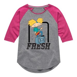 Hey Arnold! - Fresh Arnold - Toddler And Youth Girls Raglan Graphic T-Shirt - Rock your style with Hey Arnold! graphic apparel. Featuring Arnold, Helga, and the gang, these designs bring the heart and humor of this beloved animated series about growing up in the big city.