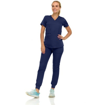 • Our scrubs for men set are crafted from a soft, four-way stretch poly/spandex blend fabric. This fabric not only offers exceptional comfort but also moisture wicking features that make it a breeze to care for. Experience comfort that lasts through even the most demanding shifts.