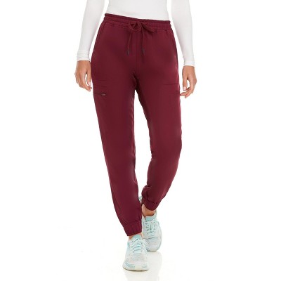 Hey Collection Women Medical Scrubs Jogger Pants with 4 Pockets and 4-Way Stretch, Wine Small