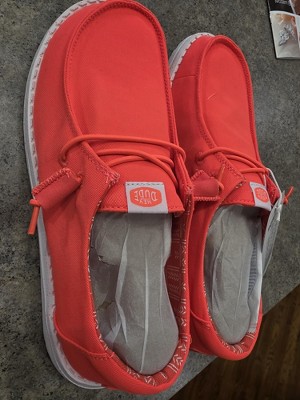I love my Hey Dudes, but the fiery coral color does NOT look like what is pictured. I was excited for these as I love the color coral. I was almost blinded before I even took them out of the bag. They are NEON ORANGE. Will definitely be returning!